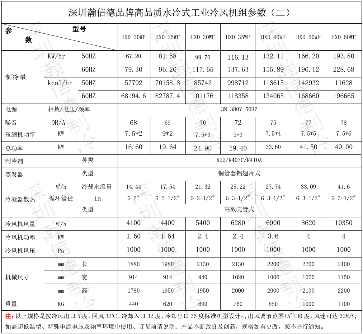 機(jī)型選擇:深圳瀚信德品牌高品質(zhì)水冷式工業(yè)冷風(fēng)機(jī)有3HP-60HP水冷式工業(yè)冷風(fēng)機(jī)可選, 特殊電源電壓/特殊頻率,3相440V/60HZ,3相220V/60HZ、3相480V/60HZ,零下10℃直出風(fēng)、零下10℃直出風(fēng),使用R407C,R404A,R134A環(huán)保冷媒、出口型等特殊要求或更大機(jī)型可訂制,低于零下10以下出風(fēng)需要做循環(huán)風(fēng)制冷。