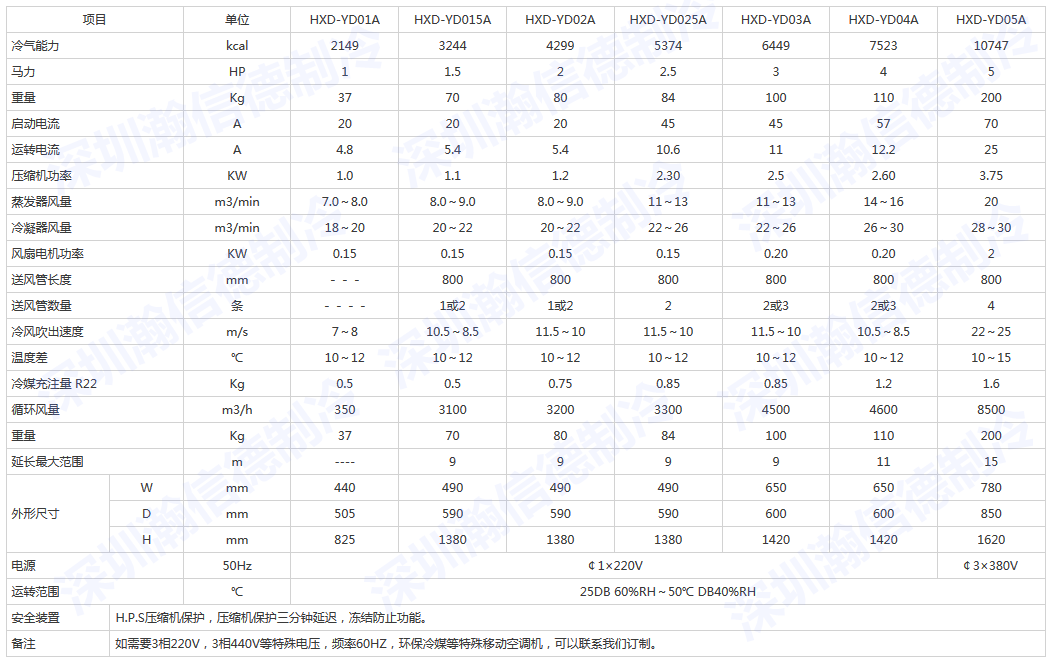 瀚信德品牌高品質(zhì)工業(yè)移動(dòng)空調(diào)機(jī)技術(shù)參數(shù)